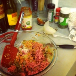 I was not in the mood for some fancy schmancy cooking tonight. I wanted easy. I got the meatloaf mix of meat at the store yesterday for this exact purpose. Tossing some spices in and calling it a meal.