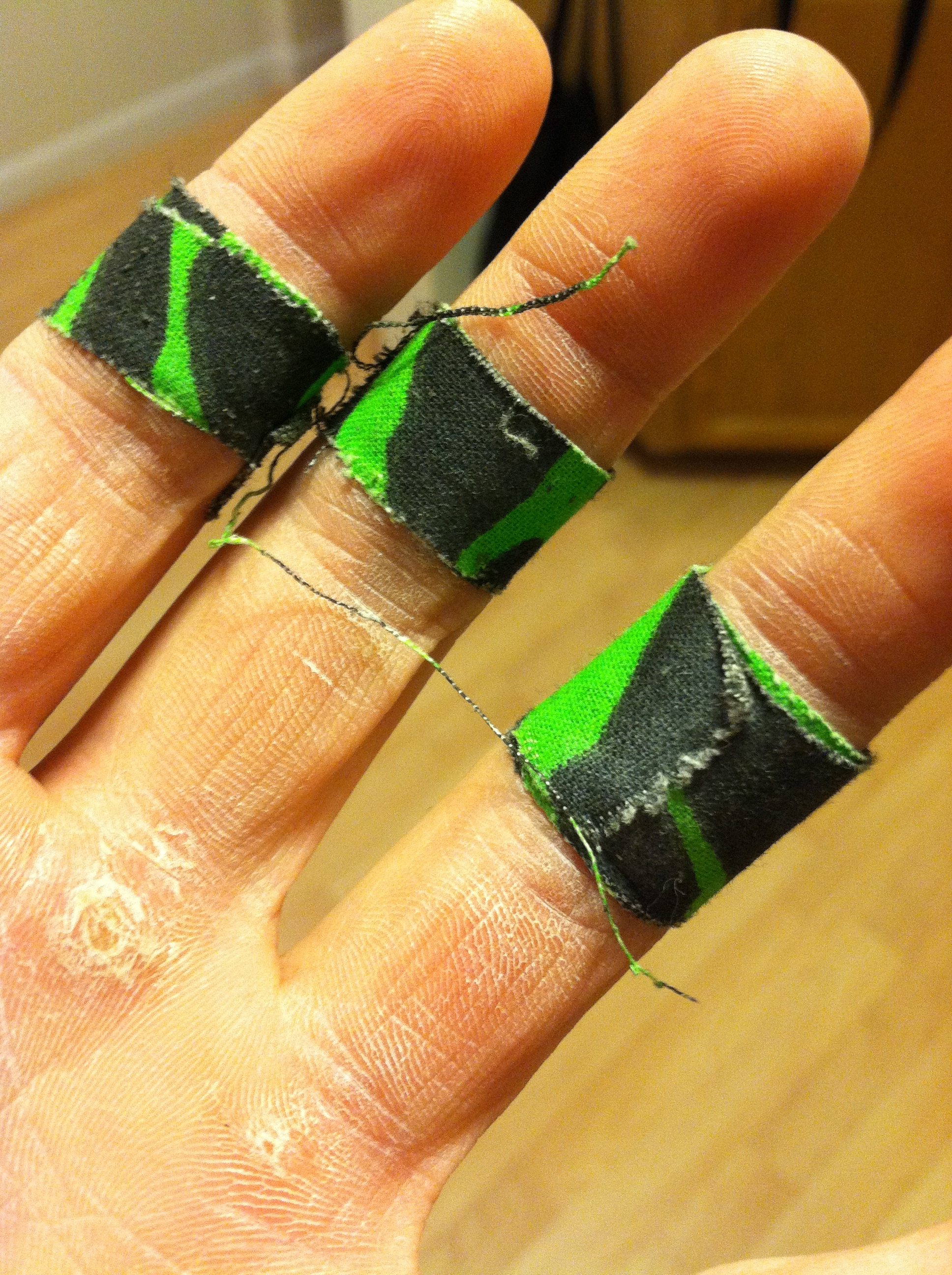 2) You manage to utilize 2 pairs of shoes, 3 pairs of gloves, a roll of tape, a hat, 2 headbands, a set of wrist wraps and an iPod… all for a 30 minute workout.