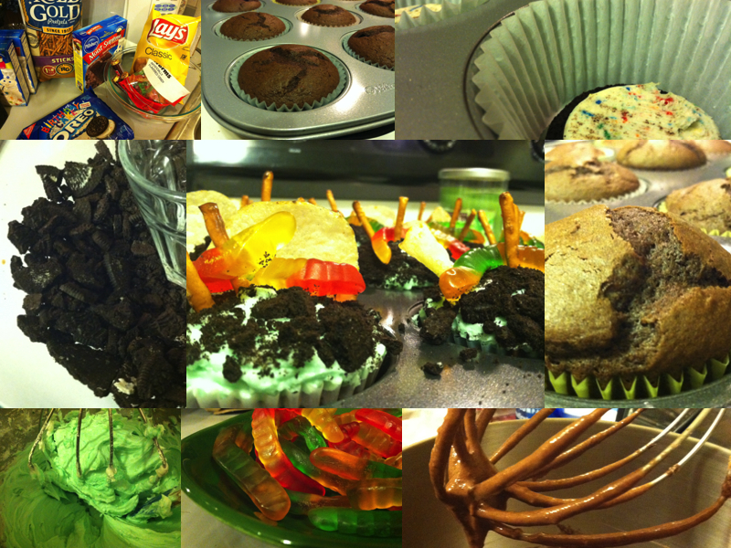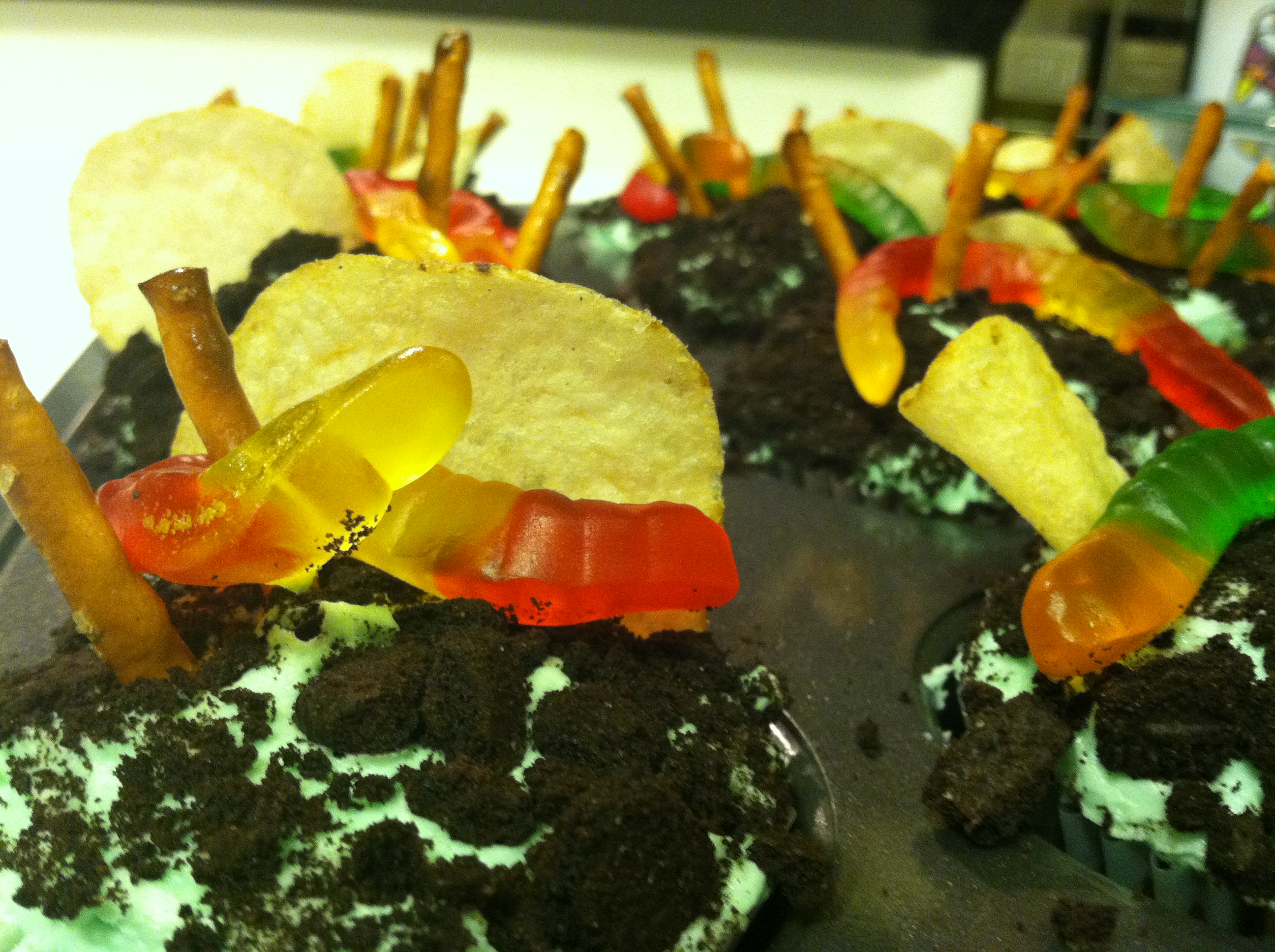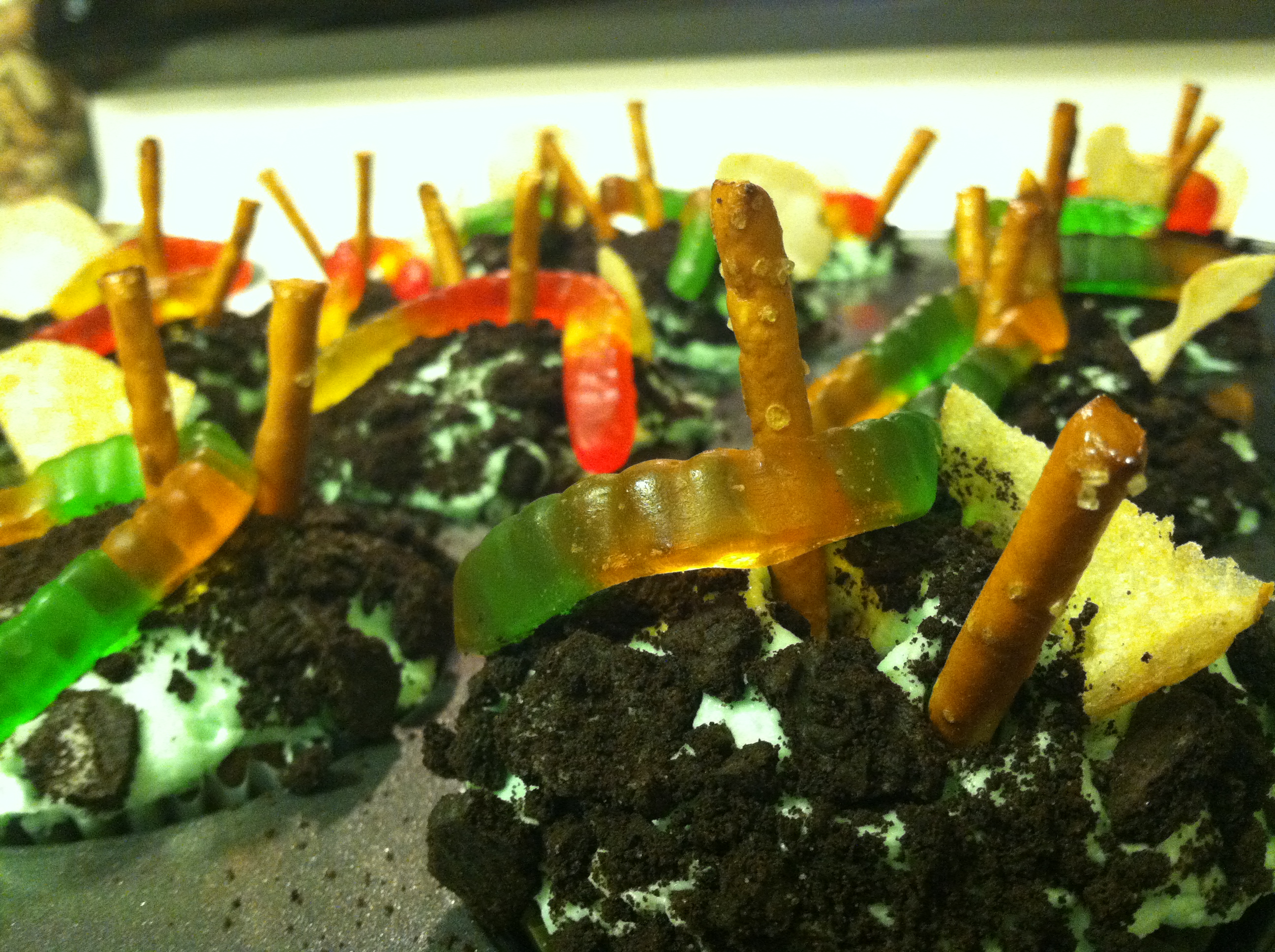 CrossFitters are an intense group of people. We don’t exactly coast through workouts, so why would we take something like a cheat meal lightly? If you’re going to have a party with cupcakes, then they might as well contain (in addition to the obvious cake & frosting) birthday cake Oreos, potato chips, chocolate crunchies, pretzels and gummy worms. Why yes, I did just rattle off what you’d expect to find at the snack table at a first grader’s birthday party.