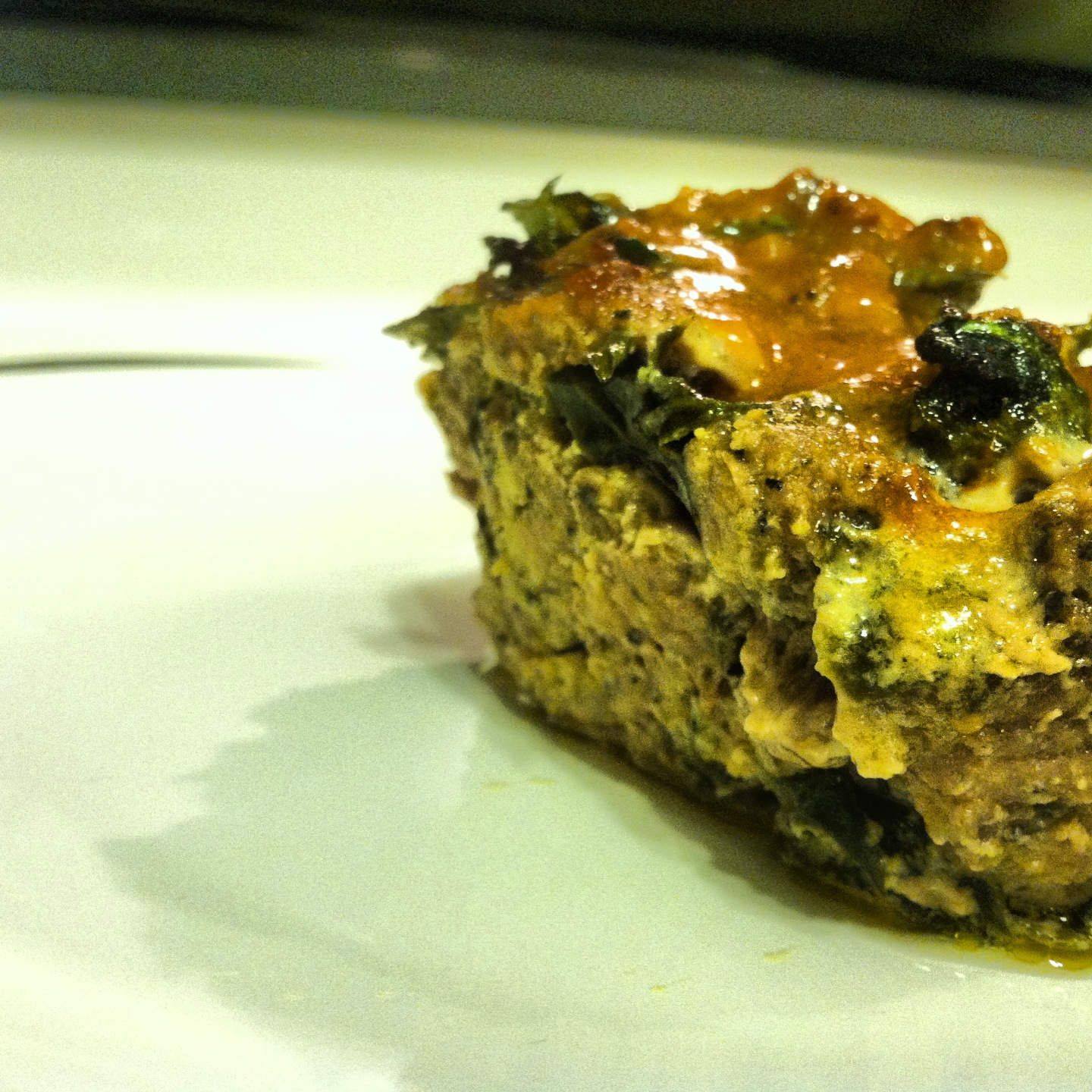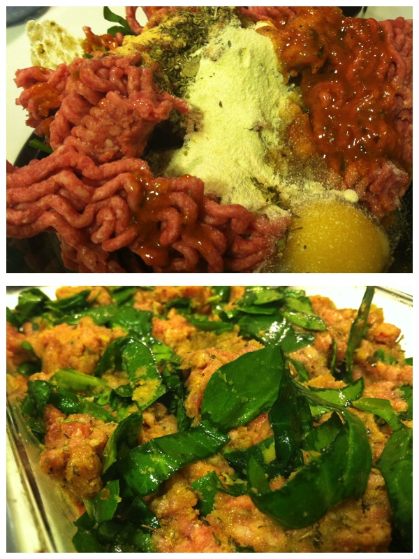 So… what to with all this spinach? Make a meatloaf! That works, right? I was out of onions so plain old Italian was out. Sometimes you just need to go with the flow and see what happens. Here is what went into my efforts:
