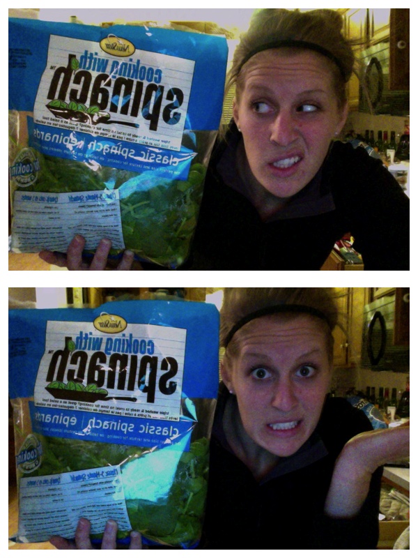 Anyhow. Why spinach? Because you apparently can’t buy it in small quantities, and I only needed a small amount for those spinach herb burgers I made by PaleOMG last week. I’m still struggling to get through the bag, and am not sure how many more spinach omelets I can handle. This bag is actually bigger than my head. See for yourself.