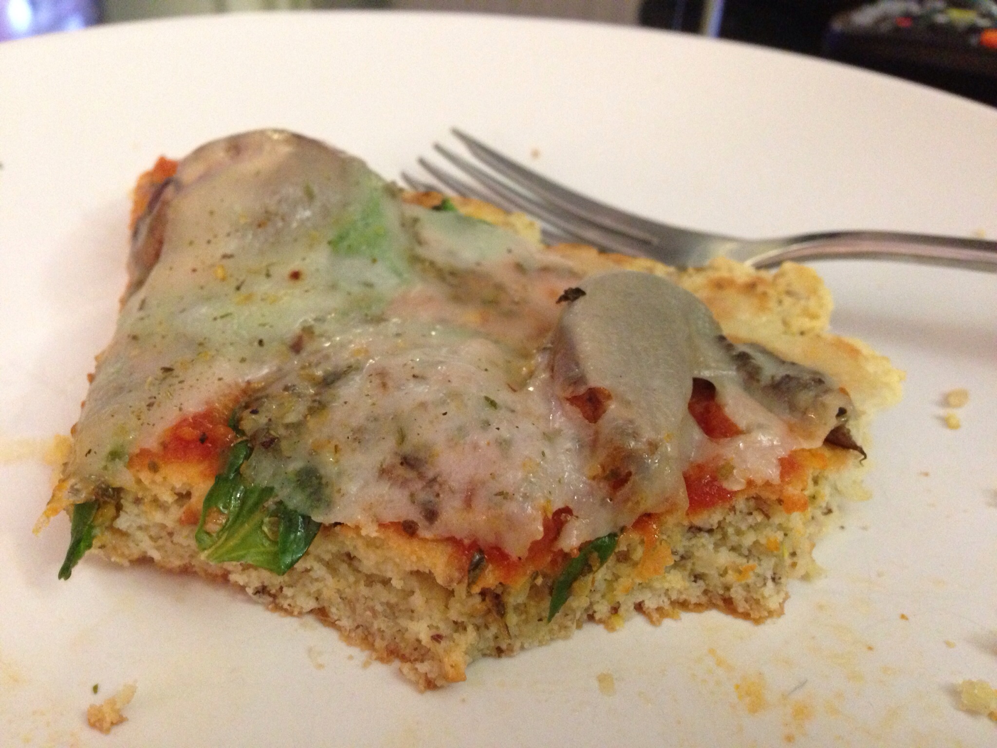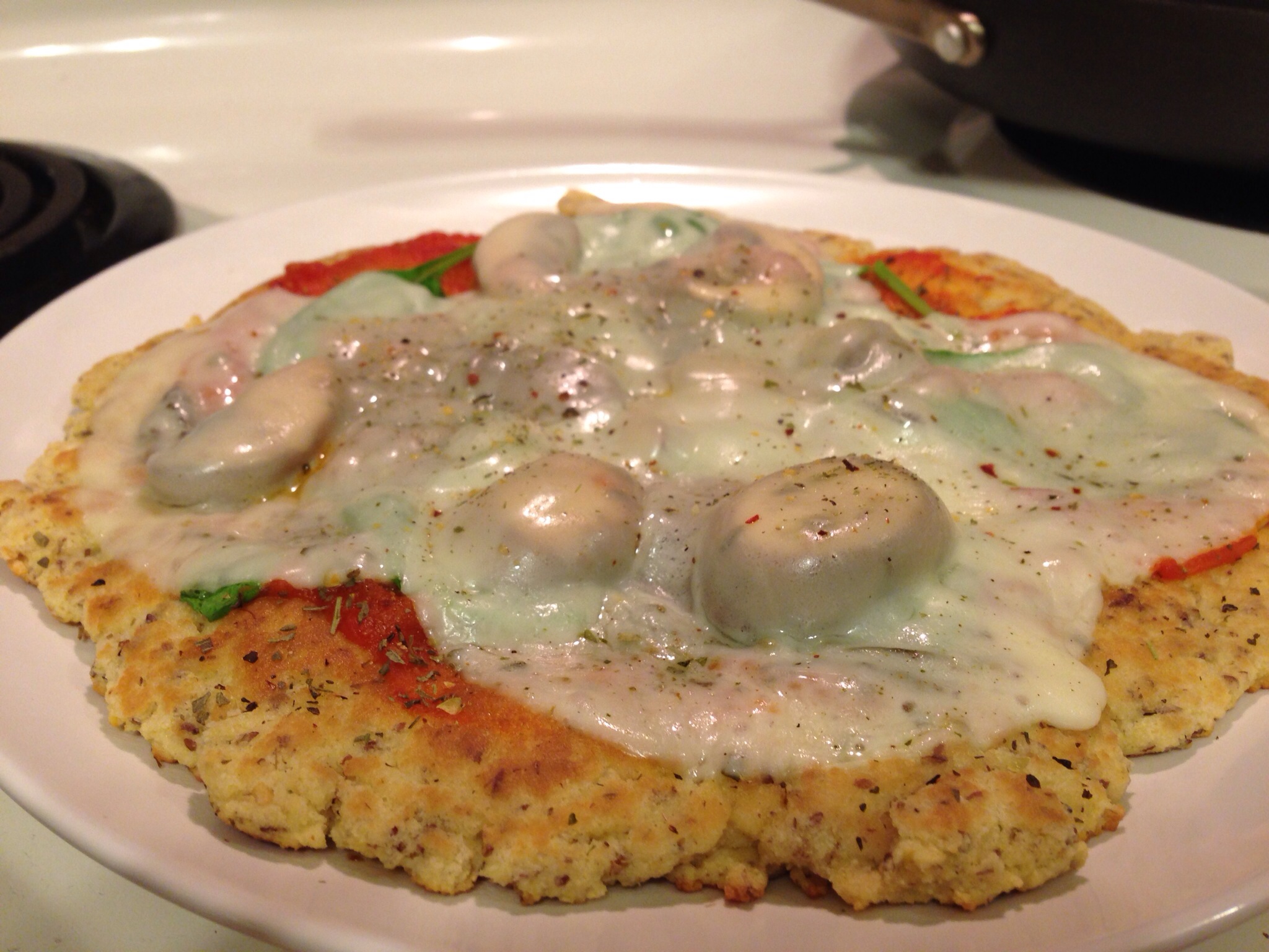 Then I got home, still with an image of super national mega pizza chain in my mind, I suddenly decided that I had provolone cheese, some tomatoes and an unpublished paleo pancake recipe that may make a decent pizza crust if I took out the cinnamon and vanilla. Things didn’t go according to plan.